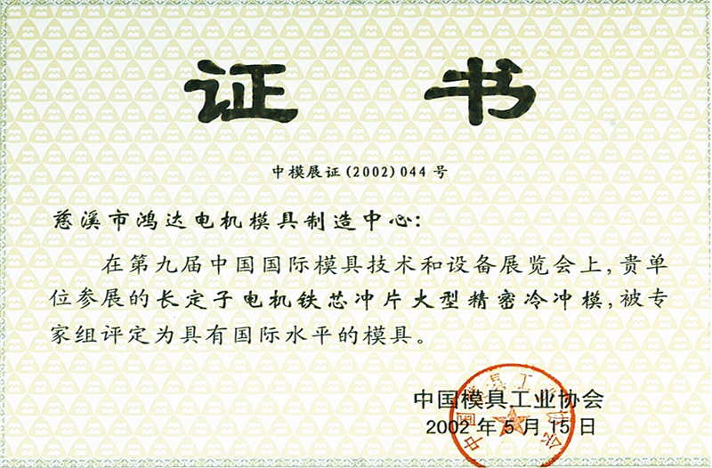 El primer Premio de la 11a Exposición Internacional de tecnología y equipo de moldes de China