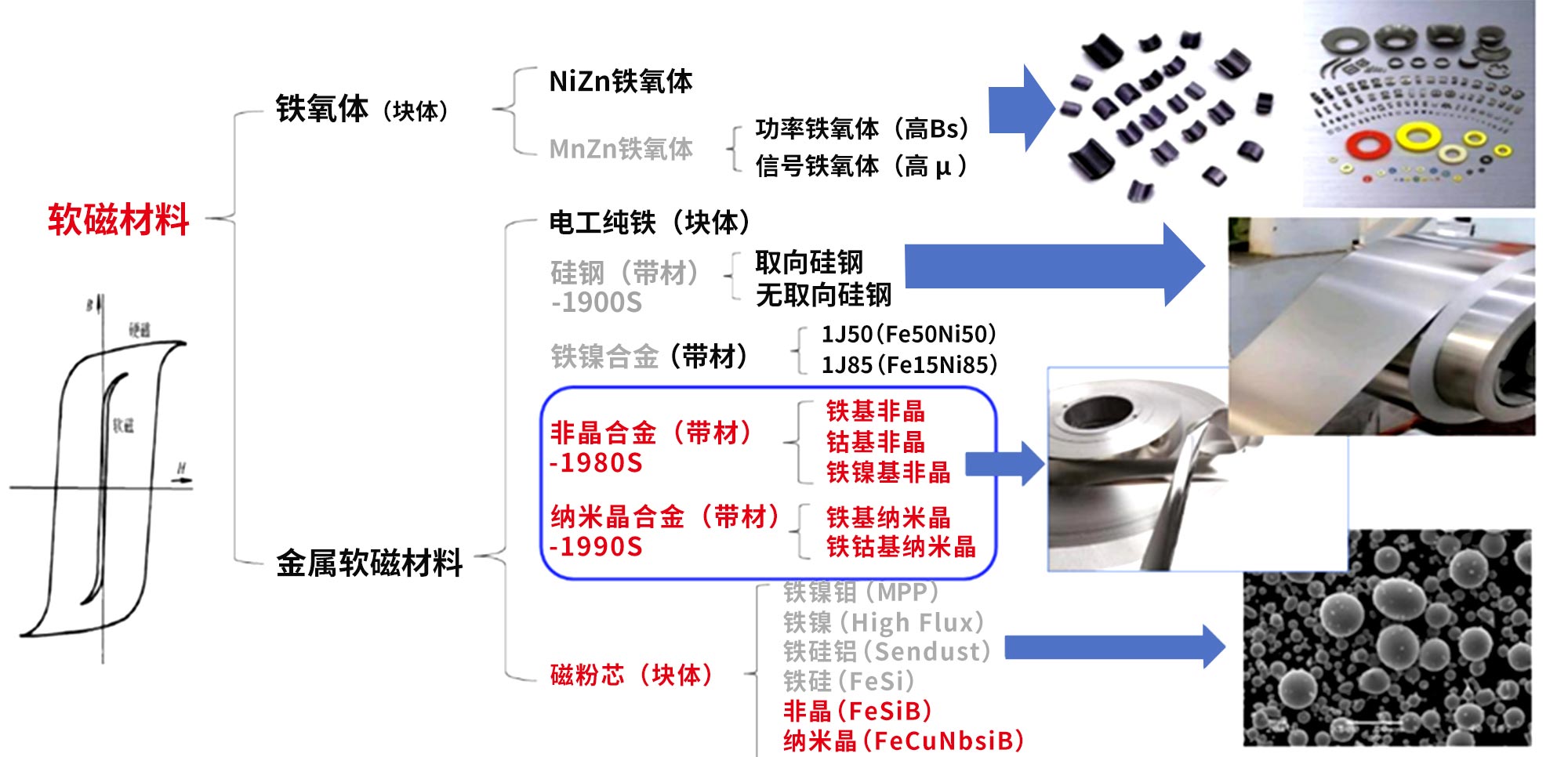 软磁材料是电力电子、信息电子等产业的基础材料之一,具有磁电转换的特殊功能,广泛应用于电能变换、抗电磁干扰、无线充电、近场通讯等领域,在新能源汽车、新能源发电、消费电子、工业电子、通讯、云端服务、计算机以及航空航天等行业有着大量应用。