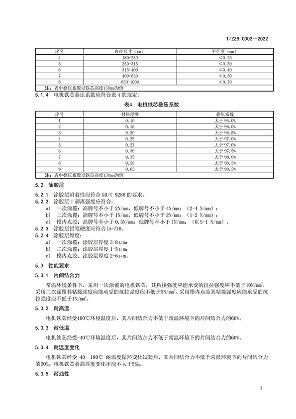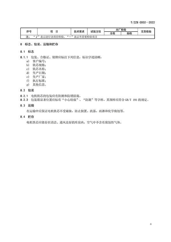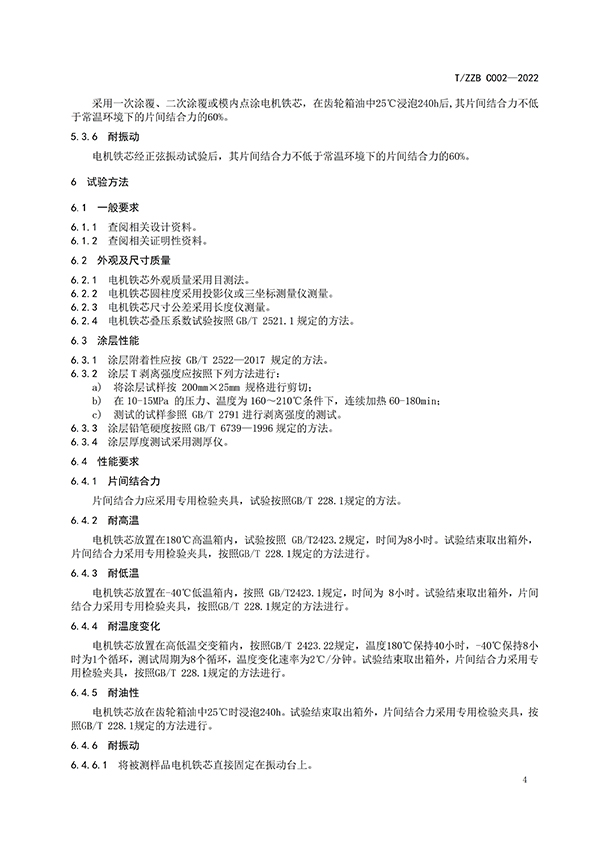 主要技术内容:本文件规定了自粘结电机铁芯的术语和定义、一般要求、技术要求、试验方法、检验规则、标志、包装、运输与贮存。
