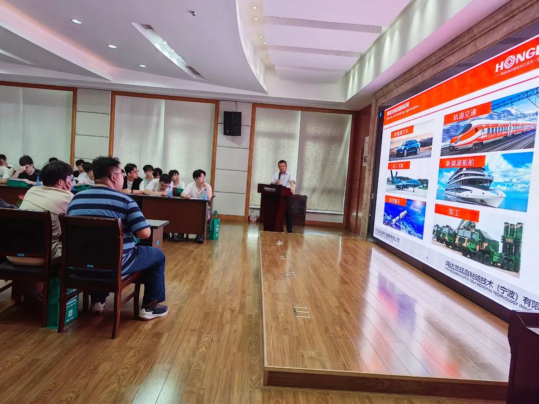 宁波火博竞体技术总监倪峻锋先生在会议室详细讲解自粘结技术,主要以自粘结技术发展、应用、工作原理、自粘结工艺类型、技术优势、检测方法以及研发成果等方面,并现场与同济大学师生进行交流,详细解答技术方面的问题。时间短暂,来日方长,希望双方保持对技术的探讨、研究、推动发展。