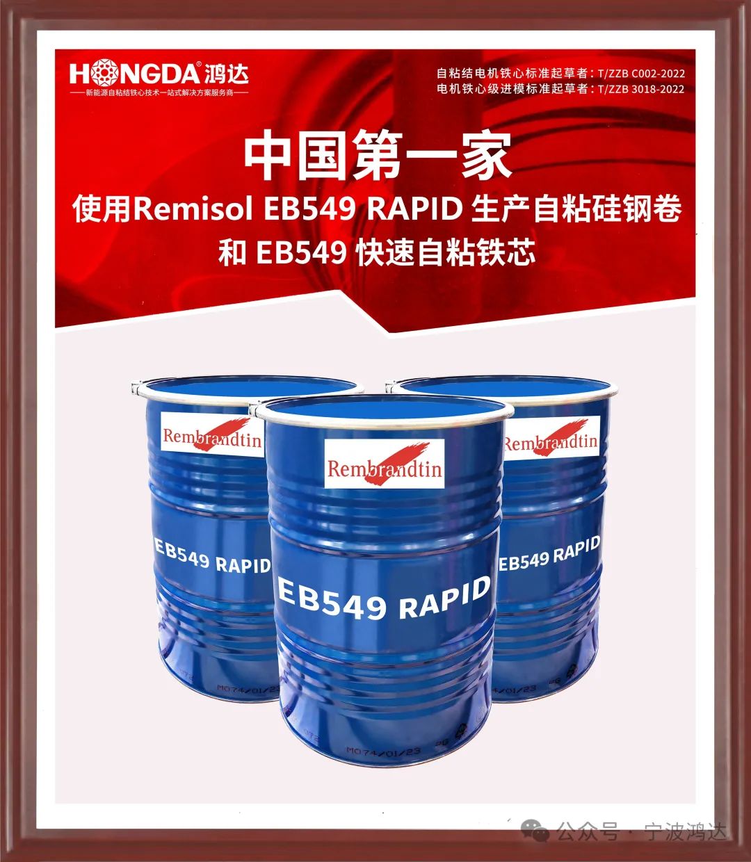 EB549、EB549快速自粘结涂液主要应用于电动汽车驱动电机等中小型电机铁心,固化时间短(2~3分或更短)适用于在线工艺生产,2023年2月进入中国市场,应用于新能源汽车驱动电机自粘结电机铁心。